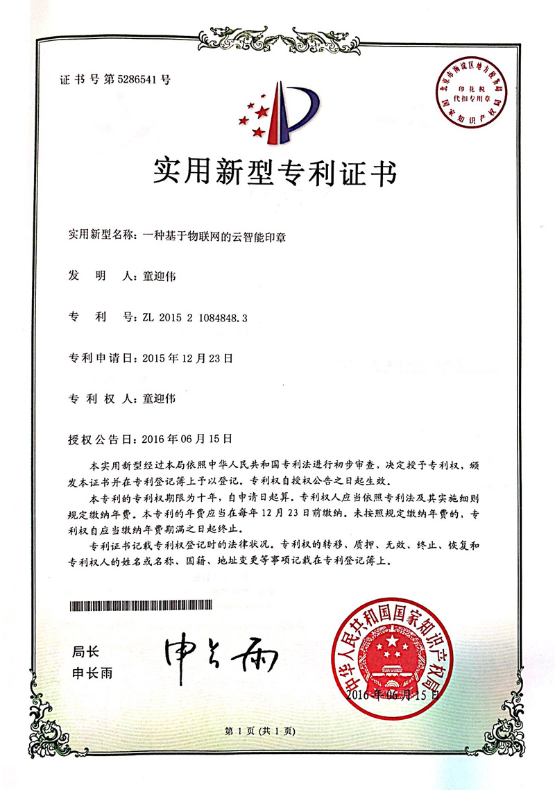 公司原創(chuàng)發(fā)明一體式智能印章技術(shù),引領(lǐng)國(guó)內(nèi)外新一代智能印簽創(chuàng)新變革。獲中日韓多項(xiàng)發(fā)明專(zhuān)利,徹底解決了實(shí)體印章和電子印簽管控的社會(huì)難題,獲國(guó)務(wù)院國(guó)資委全國(guó)央企熠星二等獎(jiǎng)。公司聯(lián)合國(guó)家信息安全產(chǎn)品認(rèn)證中心、公安部三所、信通院、中國(guó)印章協(xié)會(huì)等,主導(dǎo)起草了行業(yè)首個(gè)智能印章安全認(rèn)證標(biāo)準(zhǔn)和智能印章產(chǎn)品標(biāo)準(zhǔn),引領(lǐng)了智能印章行業(yè)發(fā)展。